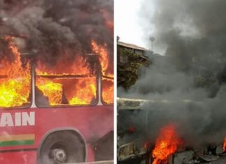 Urgent: un bus de la SOTRAGUI prend feu